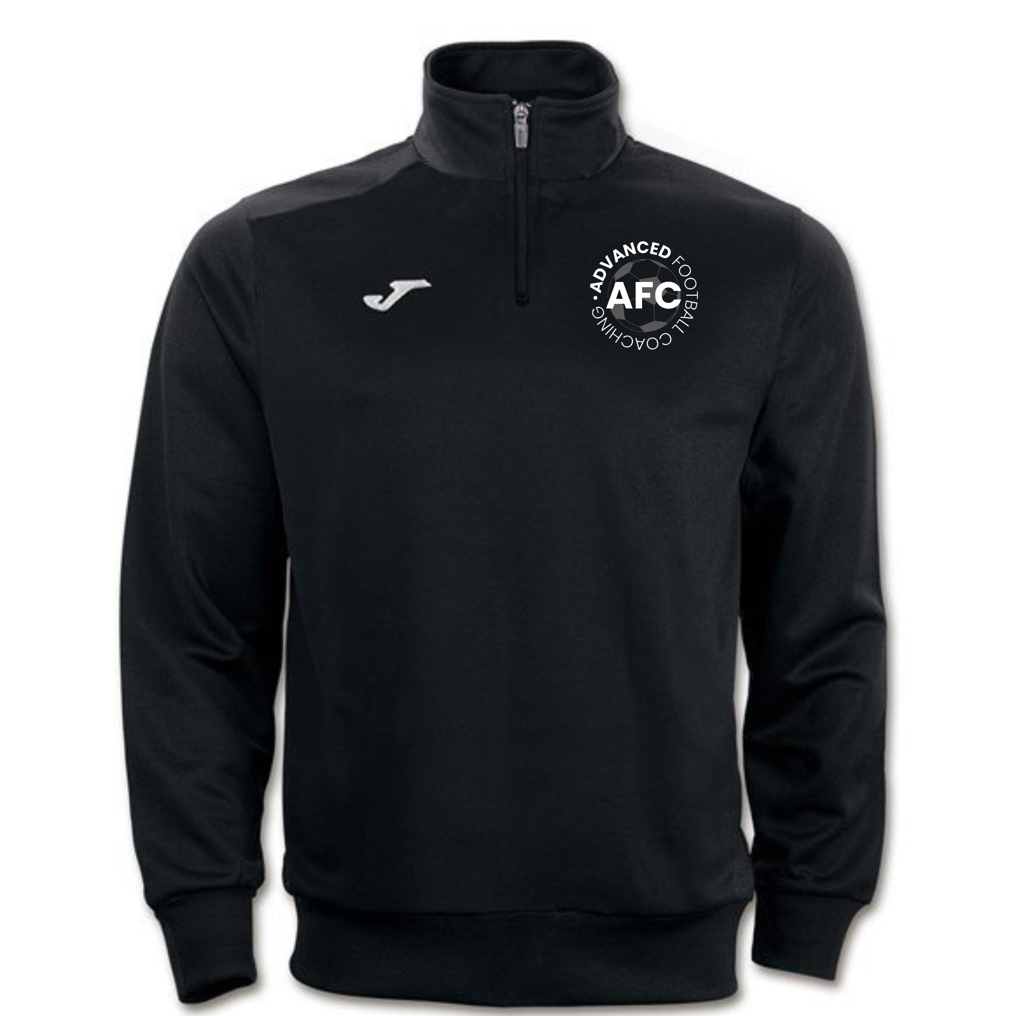 Advanced Football Coaching Black Quarter Zip Jumper with printed club logo & back wording. Option of added initials.