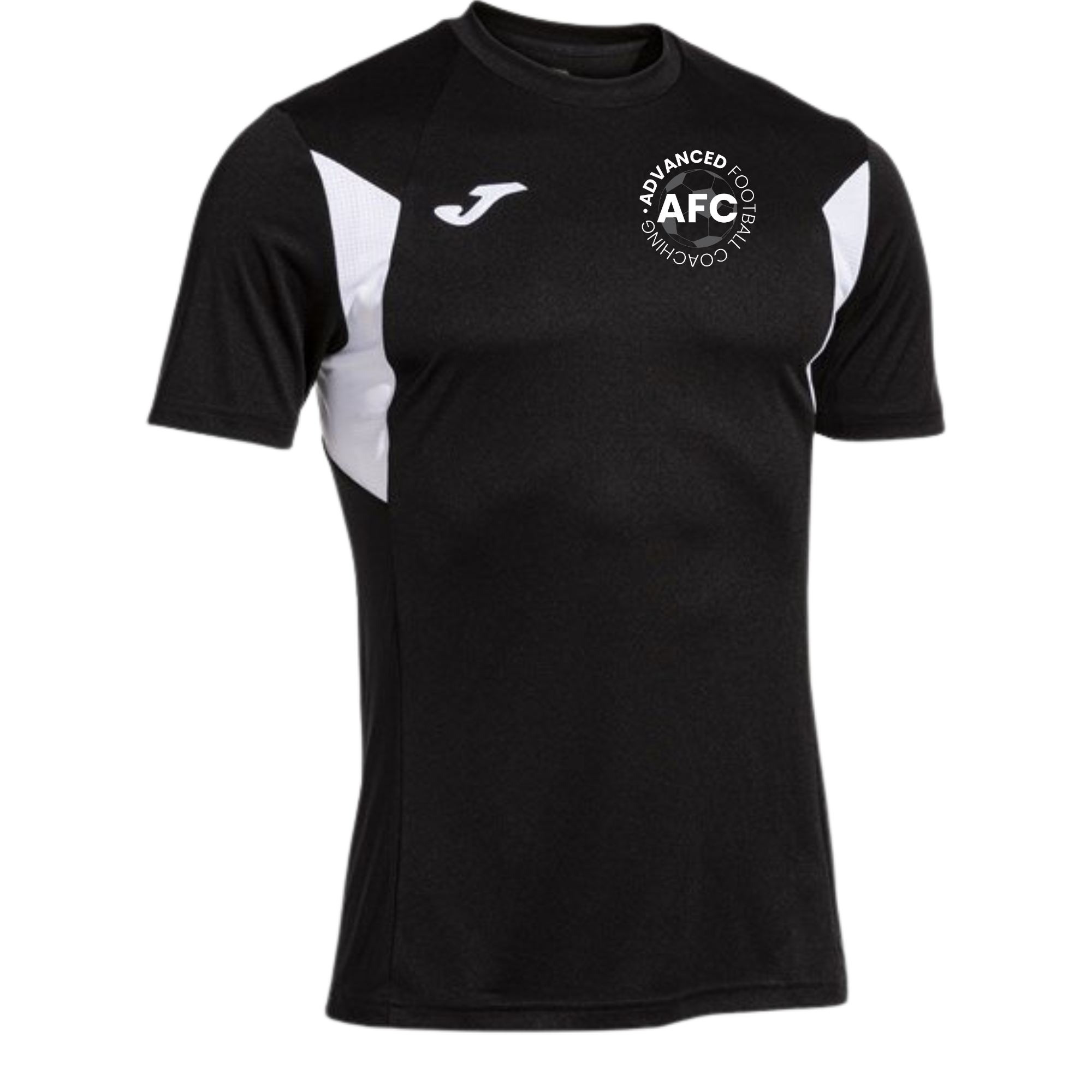 Advanced Football Coaching Black Training Shirt with printed club logo & back wording. Option of added initials.
